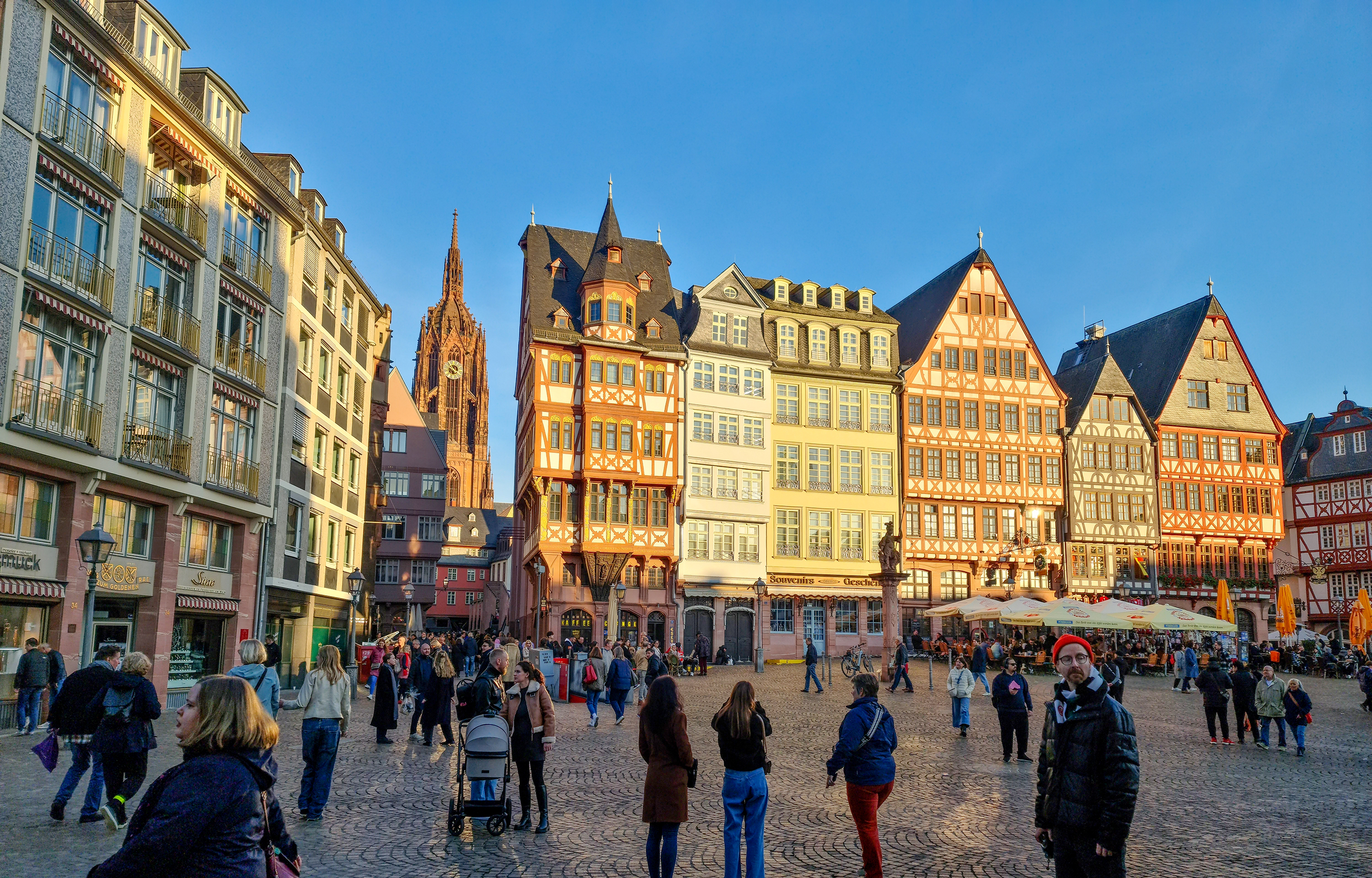 Romerberg là một quảng trường lịch sử, được xem như trái tim của thành phố Frankfurt. Đây là nơi từng diễn ra nhiều sự kiện trọng đại như lễ đăng quang của các hoàng đế, chợ Giáng sinh truyền thống và các hội chợ thương mại. Cái tên “Romerberg” mang ý nghĩa "Núi La Mã", gợi nhắc về dấu ấn lịch sử lâu đời.Dù từng chịu sự tàn phá nặng nề trong Thế chiến II, quảng trường đã được tái tạo một cách hoàn hảo, trở thành biểu tượng của sự kiên cường và hồi sinh của Frankfurt. Những công trình cổ kính tại đây không chỉ làm say mê những tín đồ yêu nghệ thuật kiến trúc mà còn kể lại những câu chuyện lịch sử quý giá.